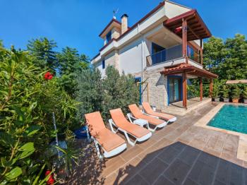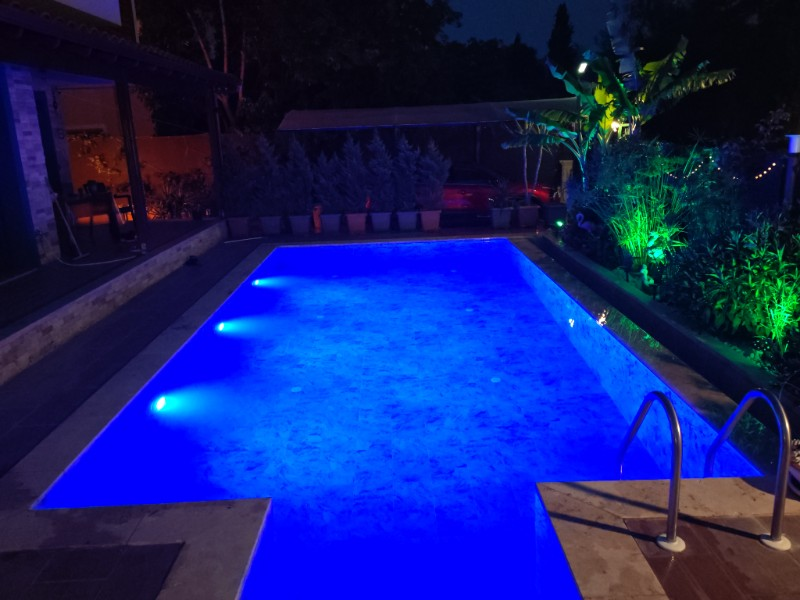 Özel Havuz & Bahçe: 38 m² (8.5m x 4.5m) müstakil yüzme havuzu, geniş güneşlenme verandası ve şık bahçe mobilyaları.